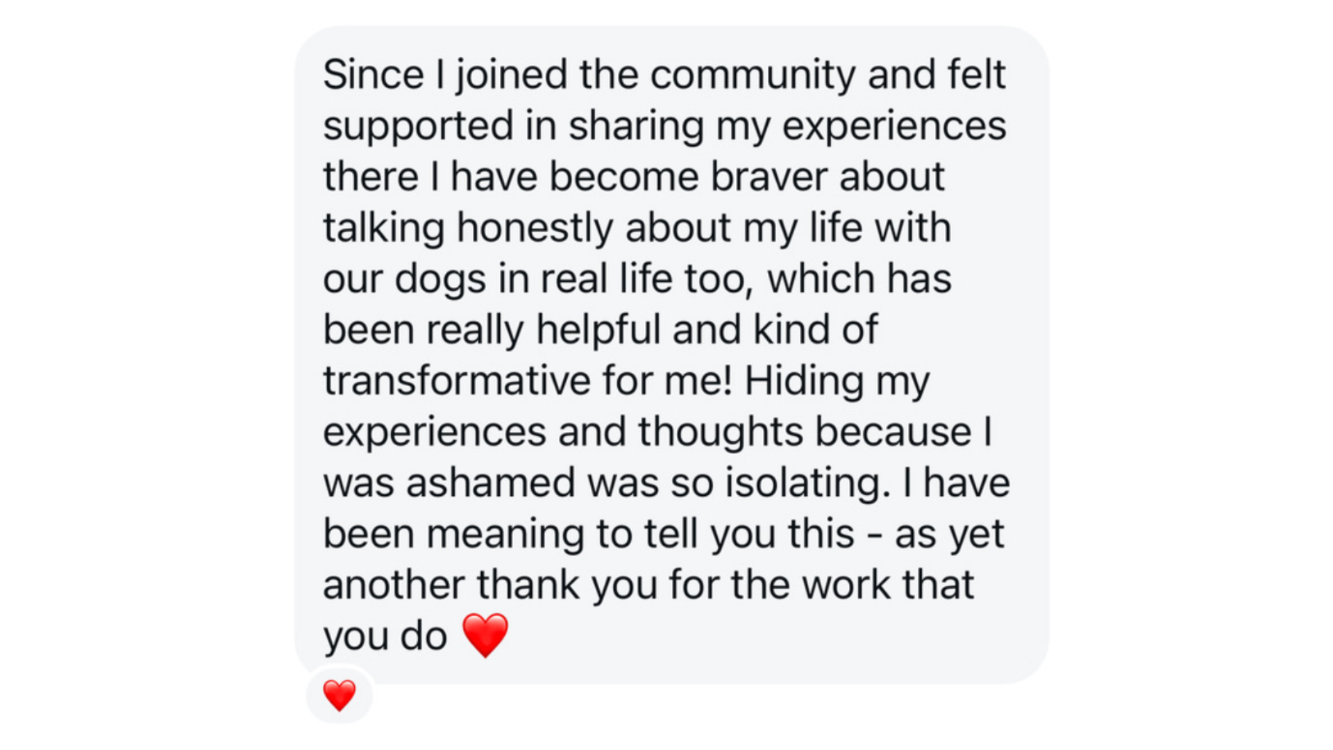 Through live group calls, discussion boards, and thoughtfully designed activities, you'll find encouragement from people who truly get what life with your dog looks and feels like.